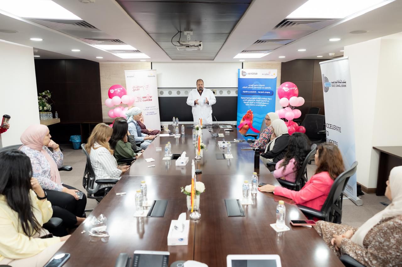 وبالتوازي، أقام البنك معرضًا للمنتجات والحرف اليدوية بالتعاون مع مؤسسة بهية للاكتشاف المبكر وعلاج سرطان الثدي، تضمن مجموعة من المشغولات اليدوية والإكسسوارات والحقائب ومنتجات التريكو والمكرميات والمنسوجات القطنية، جميعها من إنتاج محاربات بهية، دعمًا لرحلتهن في مواجهة المرض وتعزيزًا لمفهوم التمكين الاقتصادي للمرأة.